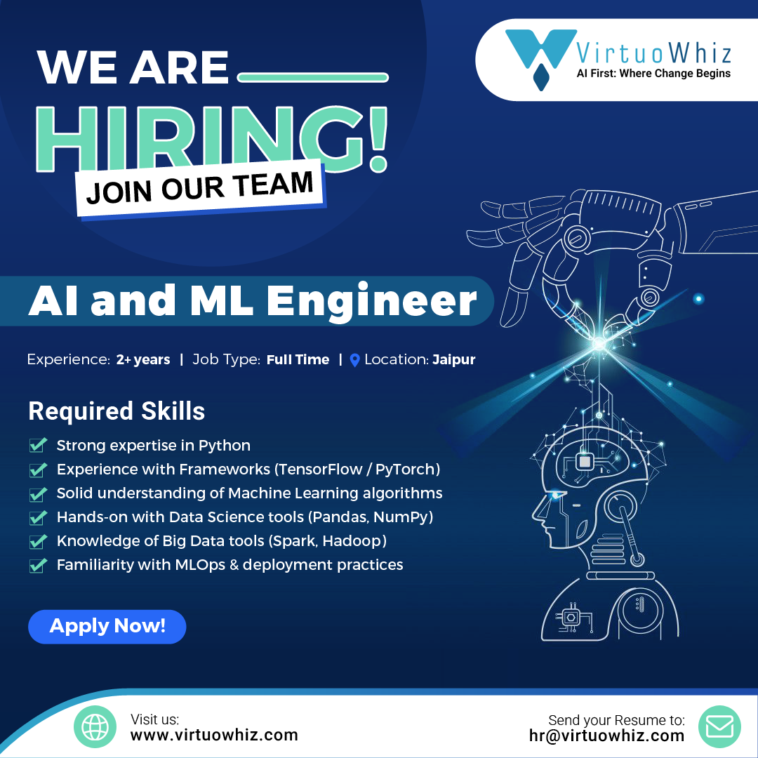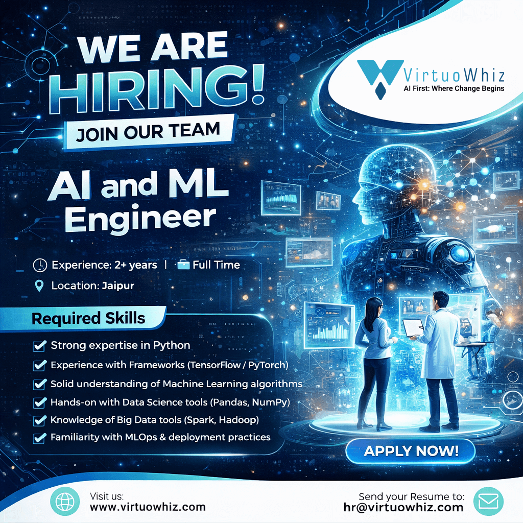 VirtuoWhiz Consulting Pvt. Ltd. is looking for a passionate AI & ML Engineer to join our growing team!